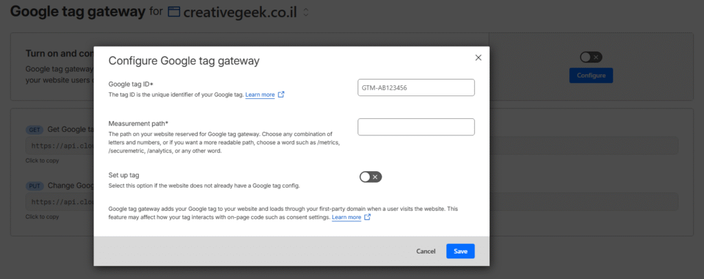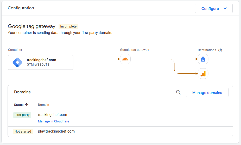 While there are multiple ways to implement the Tag Gateway, the Cloudflare integration is by far the simplest. If your DNS is already on Cloudflare, setup takes just a few clicks.